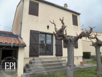 Villa T5 avec jardin et garage Entrée avec placard, cuisine séparée aménagée avec accés direct au garage, 2 WC, salon et séjour ouvert sur le jardin, à l'étage 4 chambres dont deux avec placards, Salle de bains, chauffage central au gaz et une climatisation neuve.