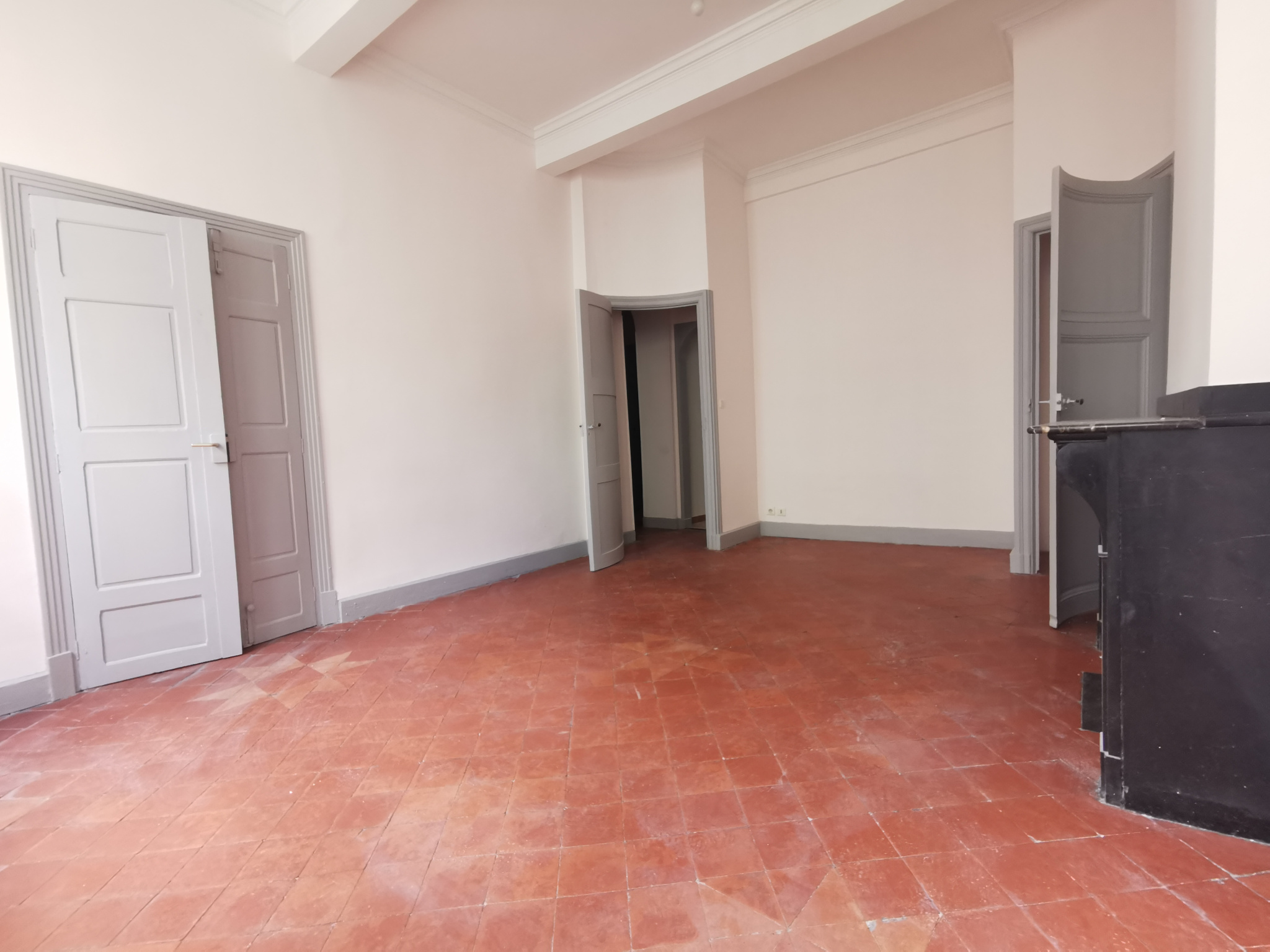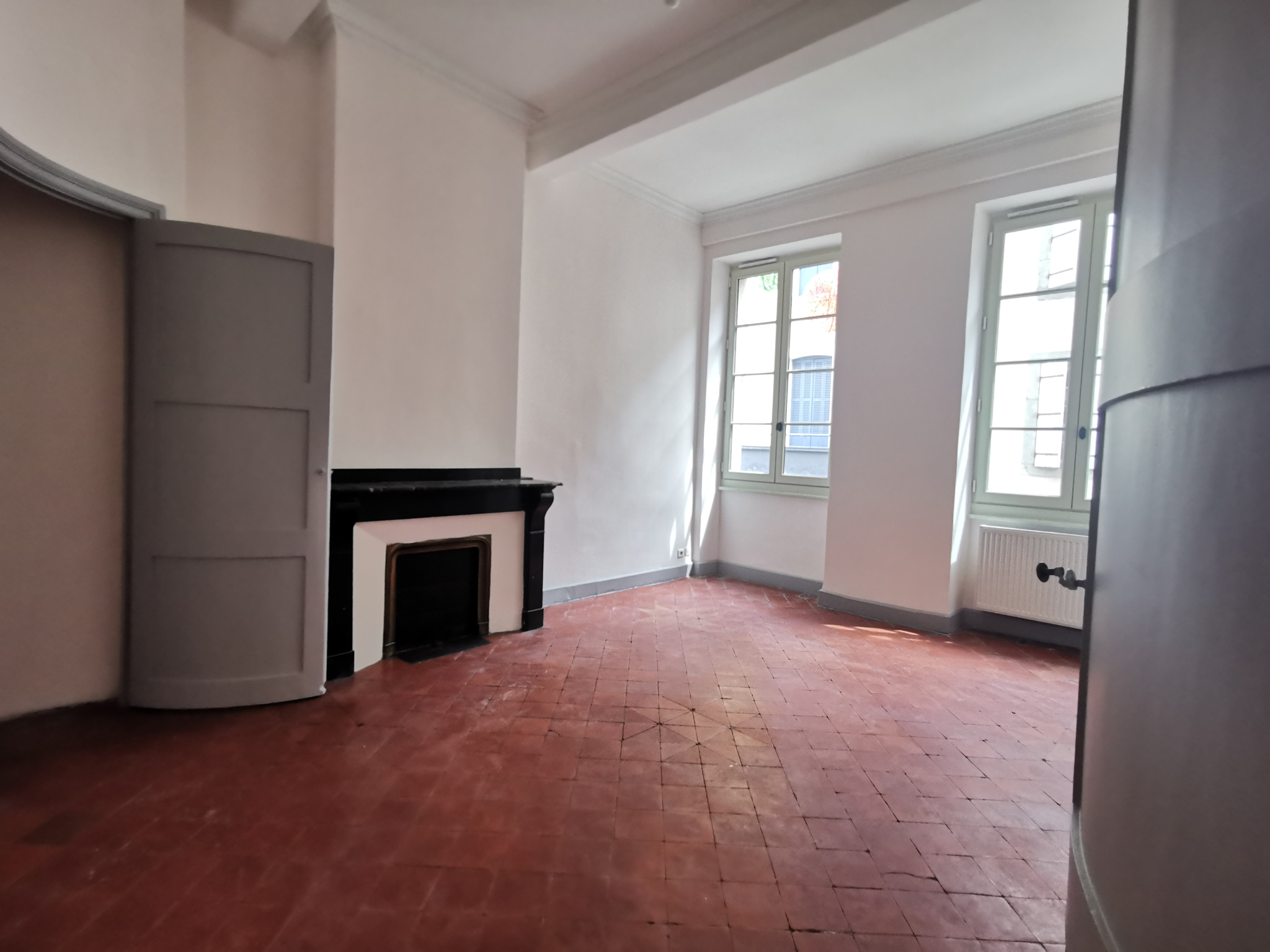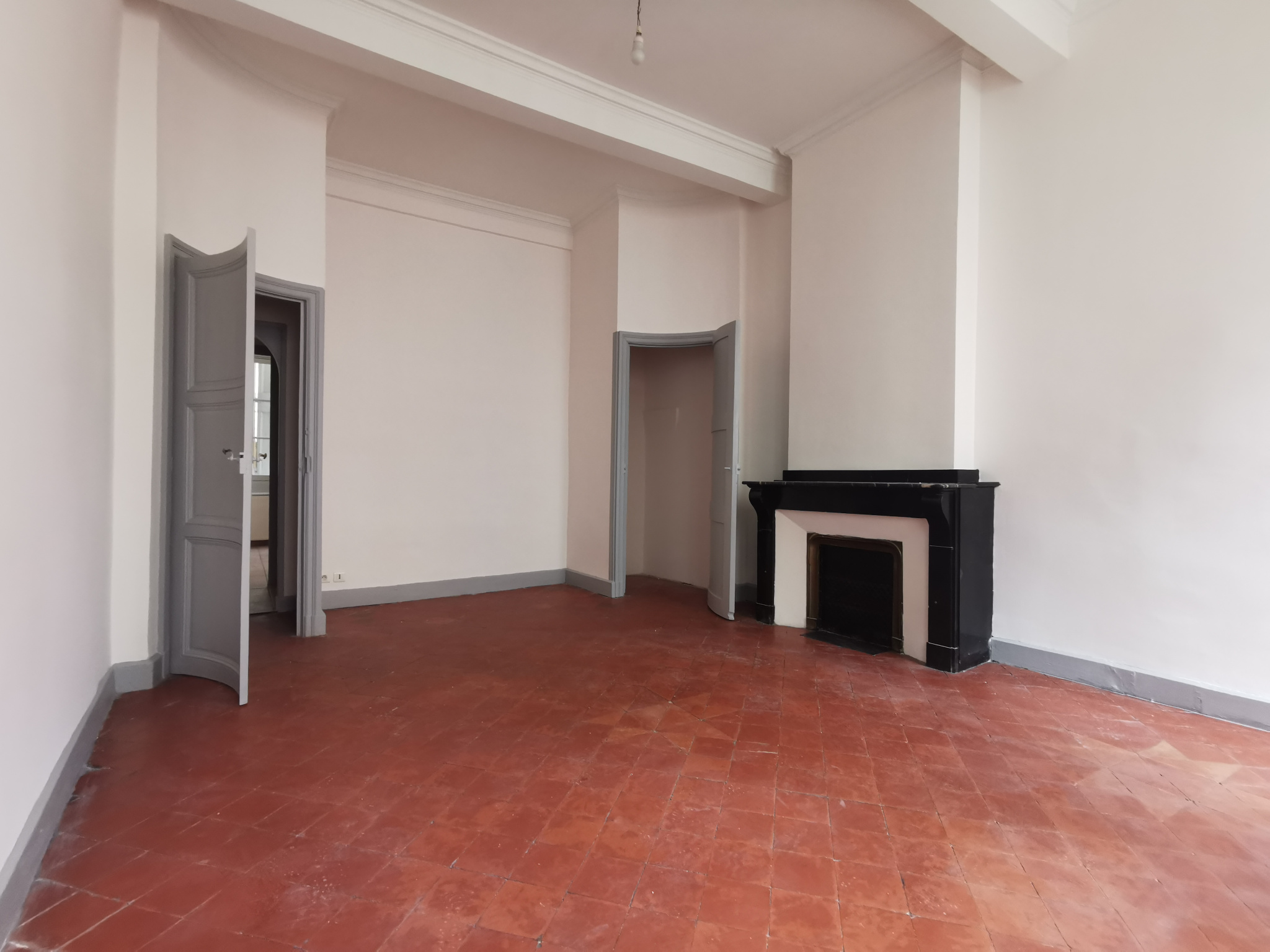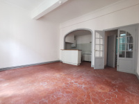 Au 1er étage d'un petit immeuble plein centre ville de Carcassonne, appartement avec beaucoup de caractère et atypique. Entrée, grand salon séjour lumineux ouvert sur la cuisine, 2 chambres, un WC Salle d'eau et un balcon.