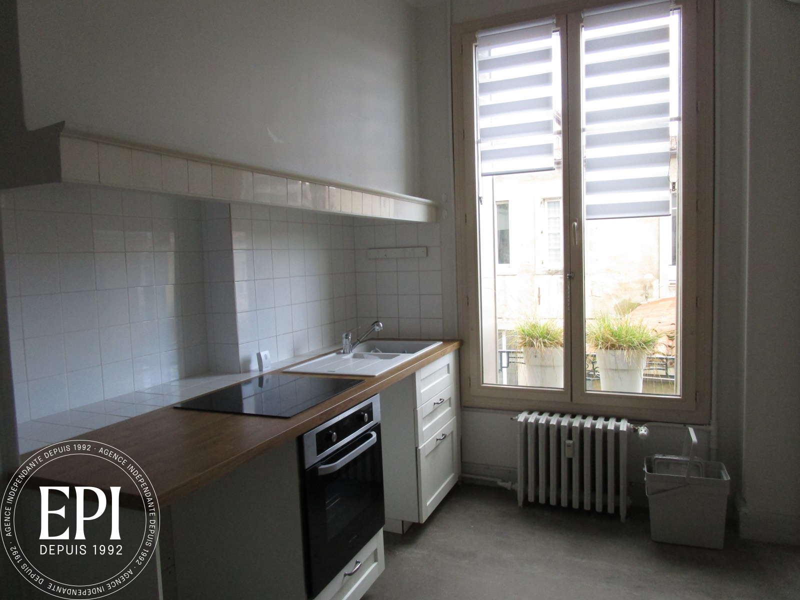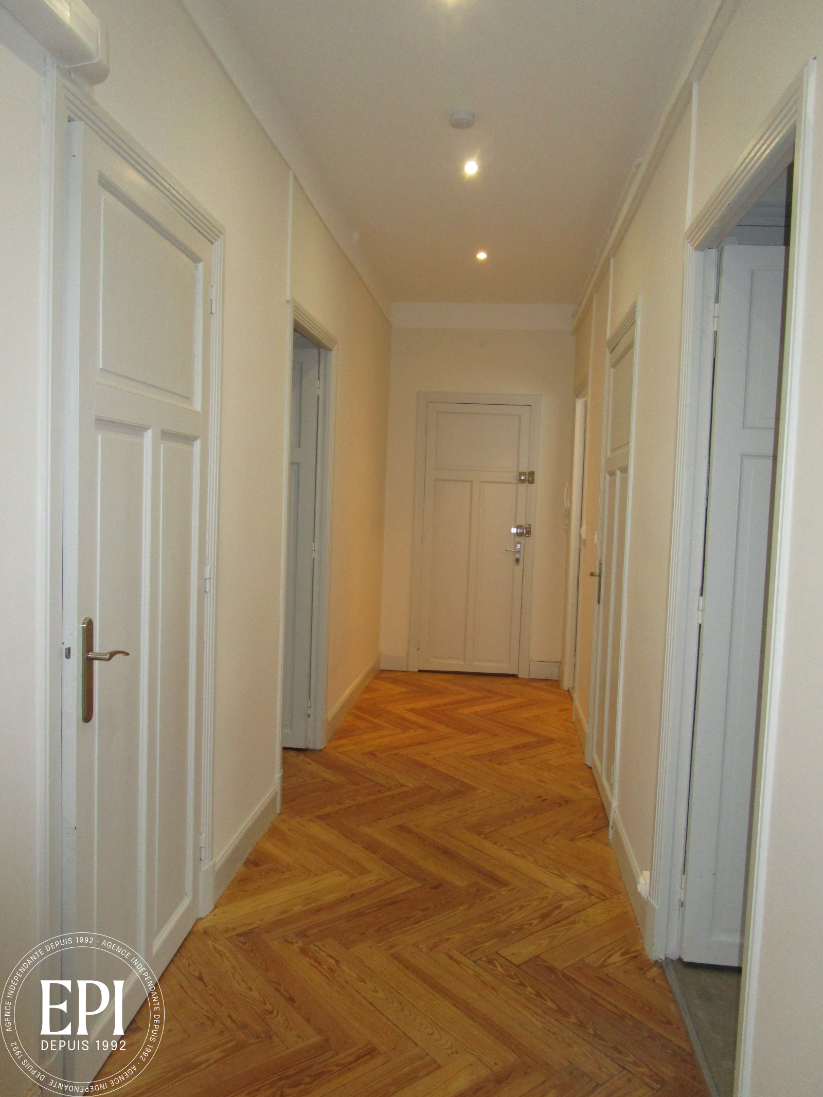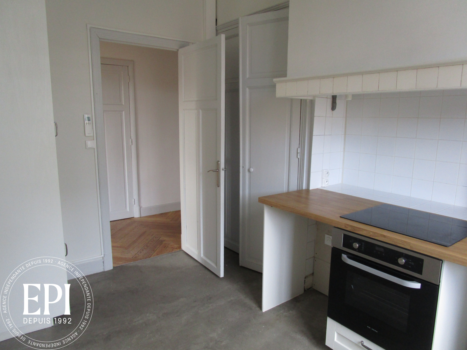 Grande entrée avec des placards, une cuisine séparée aménagée, 2 grandes chambres avec des placards,
