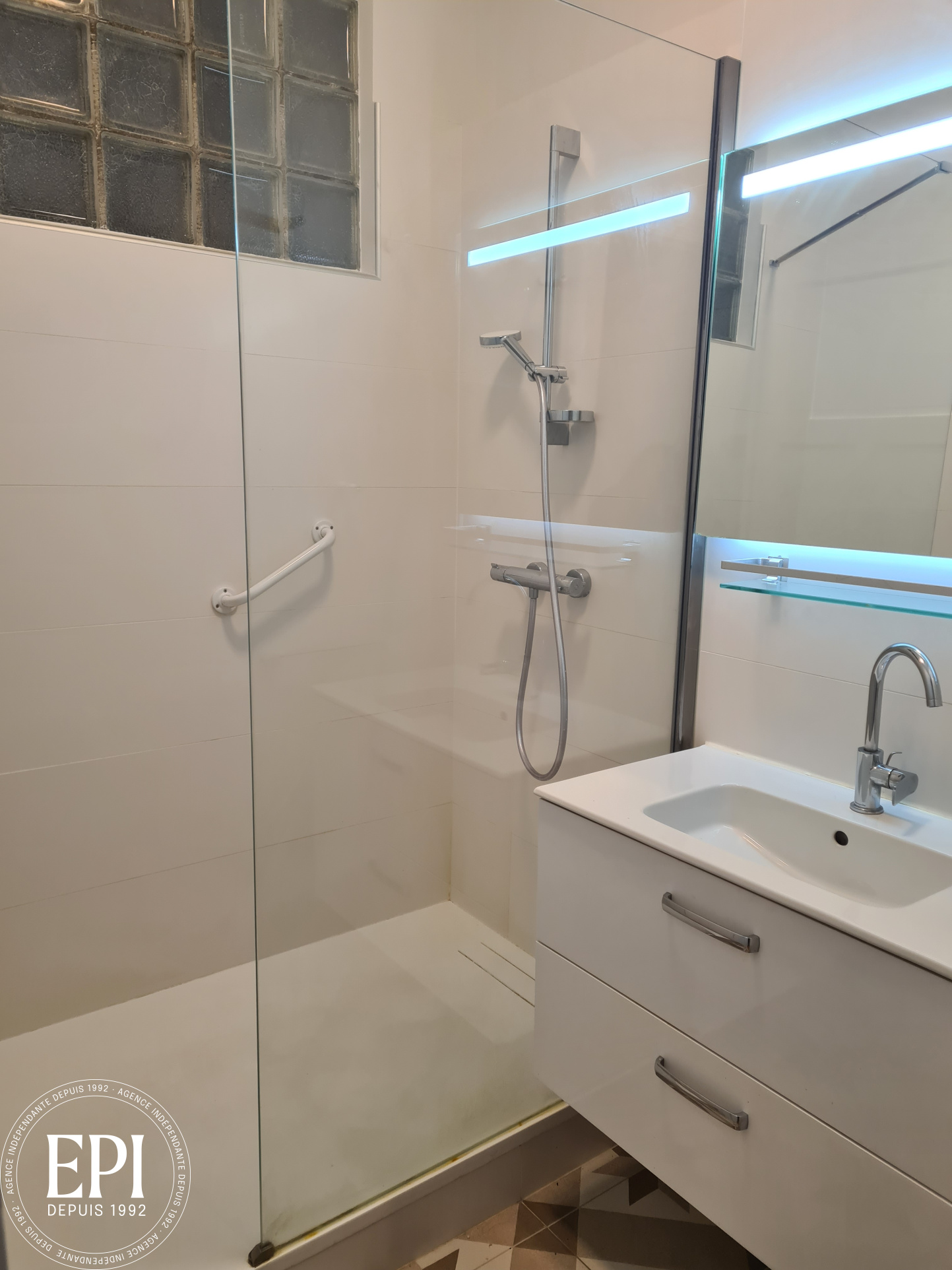 Salon et séjour lumineux, salle d'eau, WC.